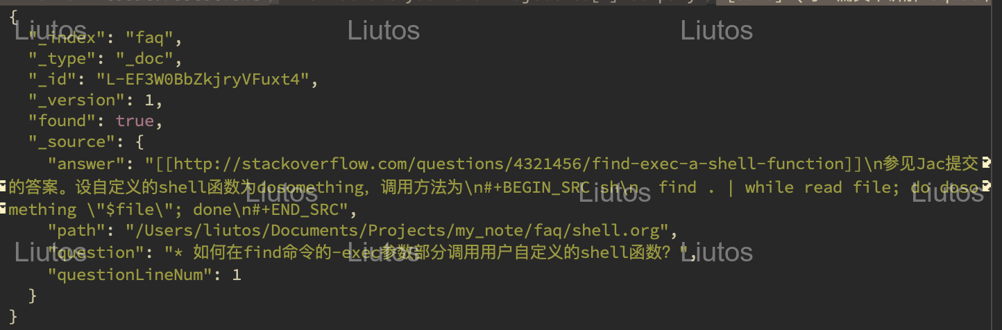 而我用来处理的其中一个工具便是ElasticSearch。比如说,上图的第一条笔记,在ElasticSearch中存成了下面这样的结构