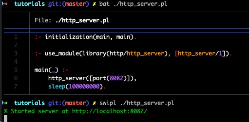 利用 SWI-Prolog 内置的库,很容易就可以启动一个 HTTP 服务器。只需要调用函数http_server即可