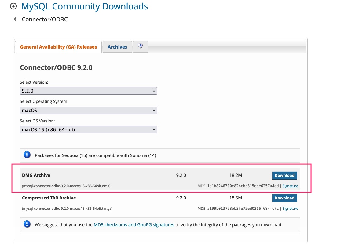 MySQL 的 ODBC 驱动文件需要自己安装。先到这里下载